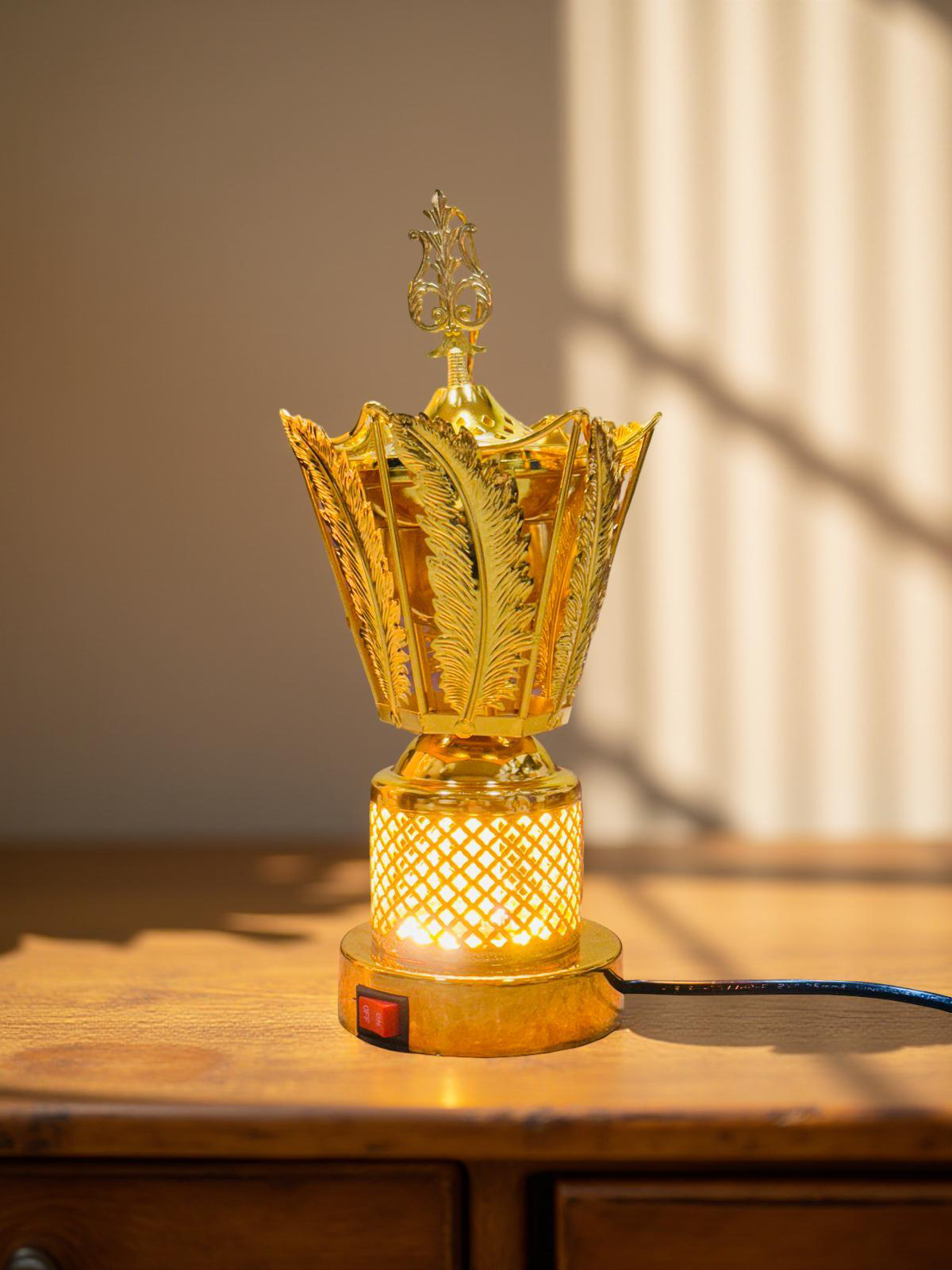- Premium golden electric bakhoor burner with ornate detailing
